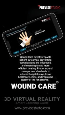 3DVR allows students to learn and practice wound care procedures in a virtual environment that closely mimics real-world scenarios for typical wound.. This module will help to understand, learn and teach typical Wound care procedure in systematic manner, which is almost applicable for all types of wounds. This 3D Wound Care module can be effective in improving theoretical knowledge and understanding of wound care concepts.