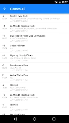 Do you love disc golf? So do we and that's why we developed Discores for disc golf. Whether you're an amateur or a pro disc golfer, Discores is a useful app for tracking your scores and progress while you're out throwing discs. Discores features a unique game view which let's you easily and quickly mark your and your friends' scores, see the leaderboard, and follow hole-by-hole progress with the multiplayer scorecard. We've focused on simplicity and ease of use so that you can focus on what you like — playing disc golf!
